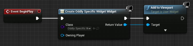 then, well just plug all that into the “Begin Play” - and specify our Widget of choice - and it will be there when we start our level the next time.